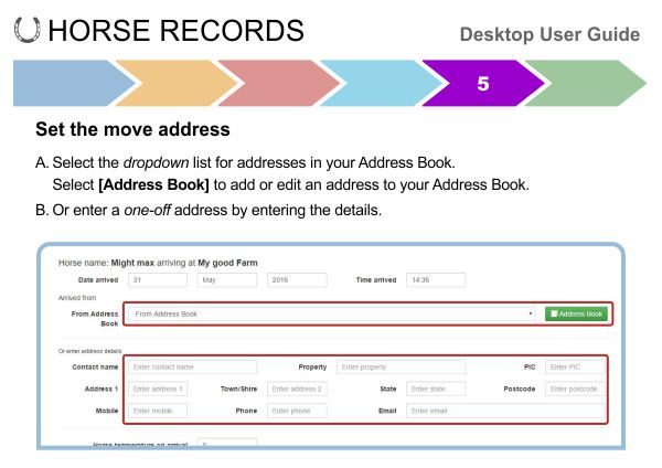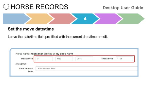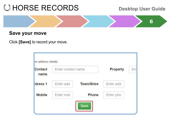 Movements of horses can be updated by accessing the database and changing the location of a particular horse. Regularly occurring locations eg Home, Work will appear as options in a drop down box. New locations can be easily added. Every time the location of a horse is changed this is recorded in a log and stored.